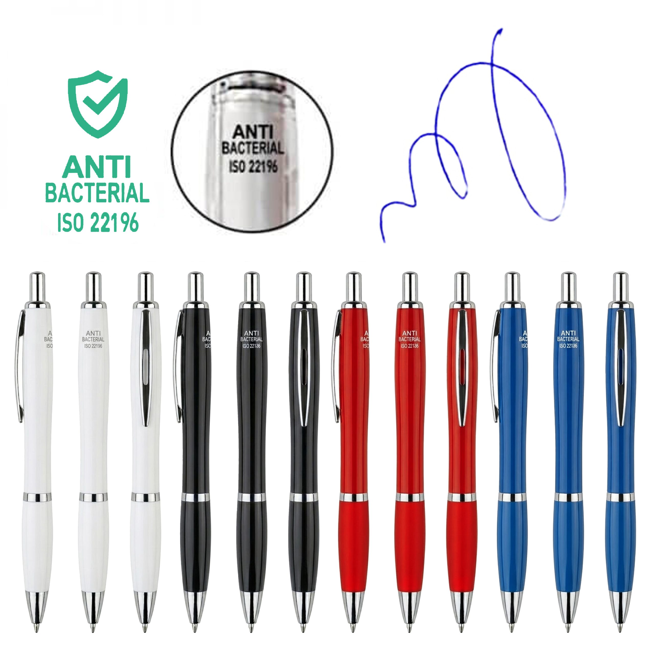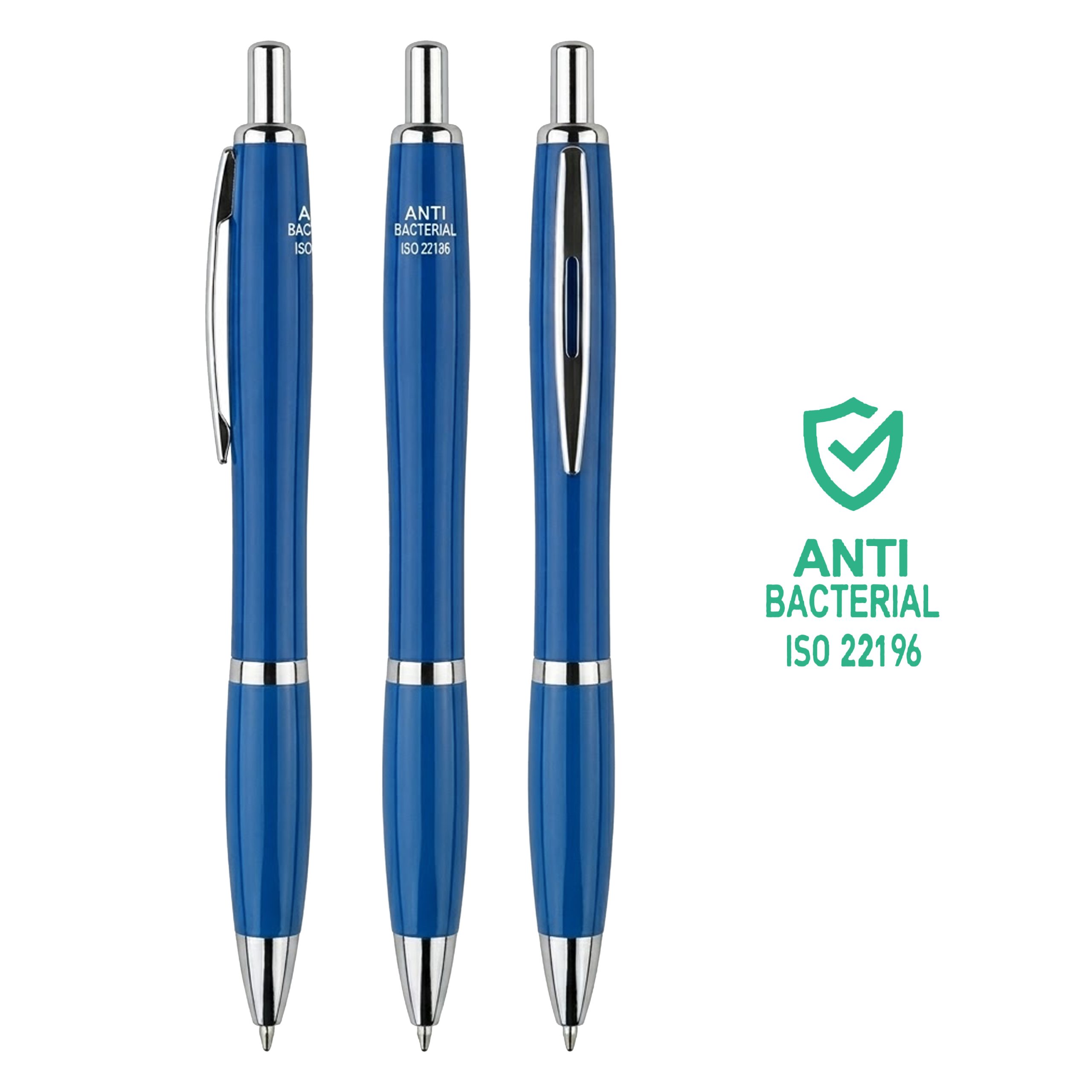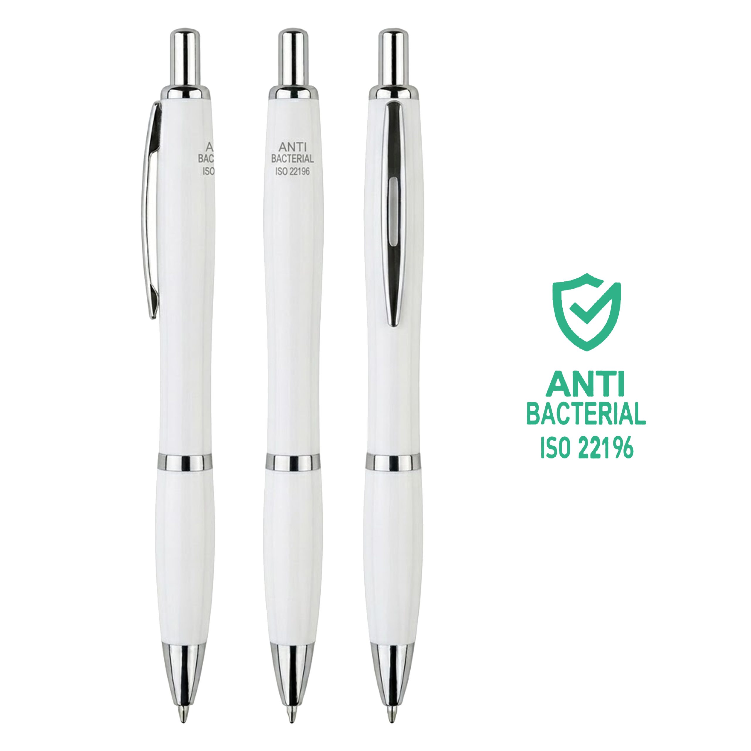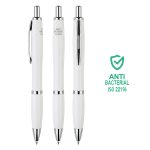 - Bolígrafo fabricado en ABS y tratado con iones de plata para inhibir y evitar el proliferamiento de bacterias en su cuerpo.