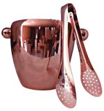 Set de hielera con pinzas de acero inoxidable electro-plateado en cobre. Presentación en caja individual blanca.