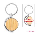 Llavero metálico con aplicación de bambú. Acabado brillante.