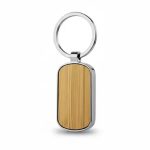 Llavero metálico con aplicación de bambú. Acabado brillante.
