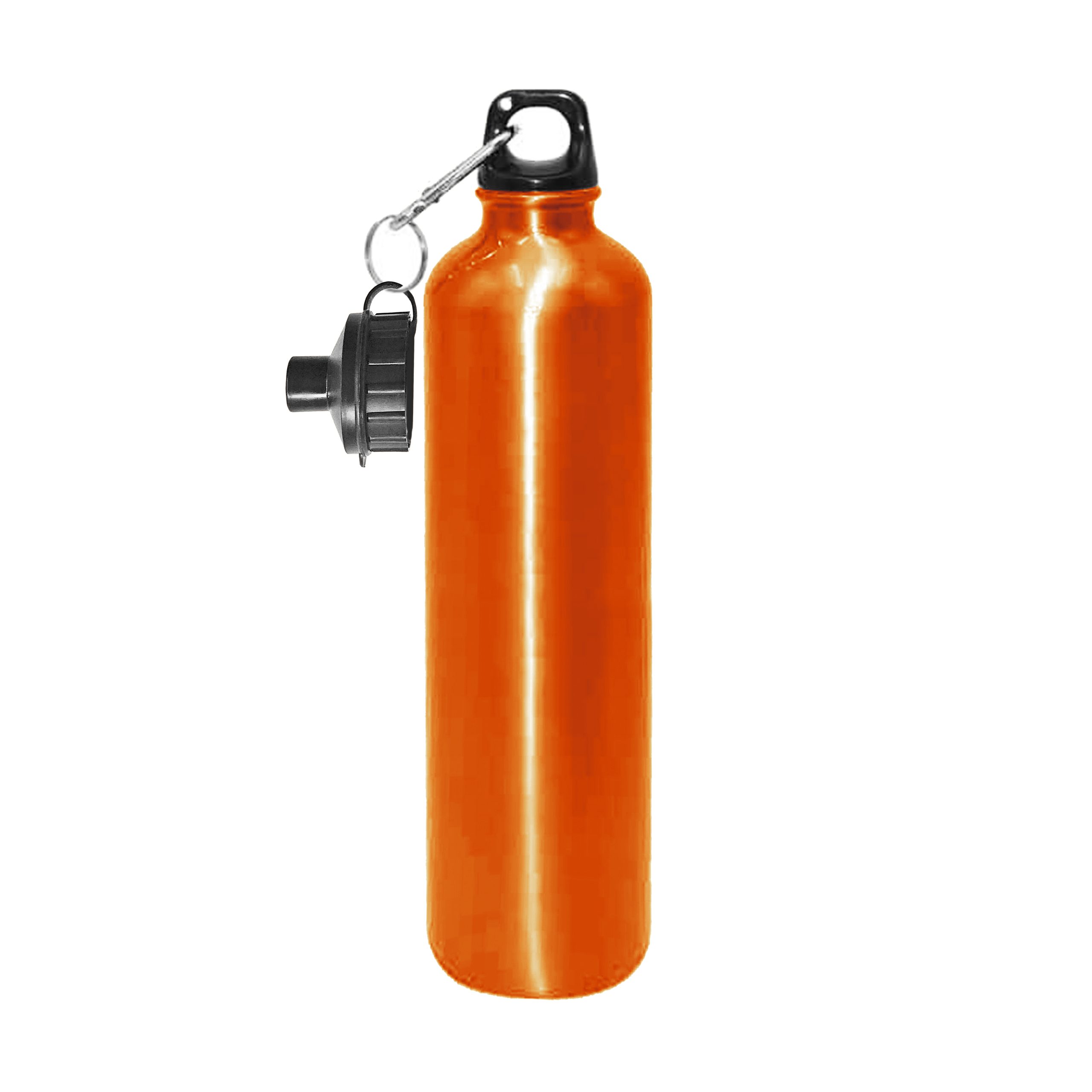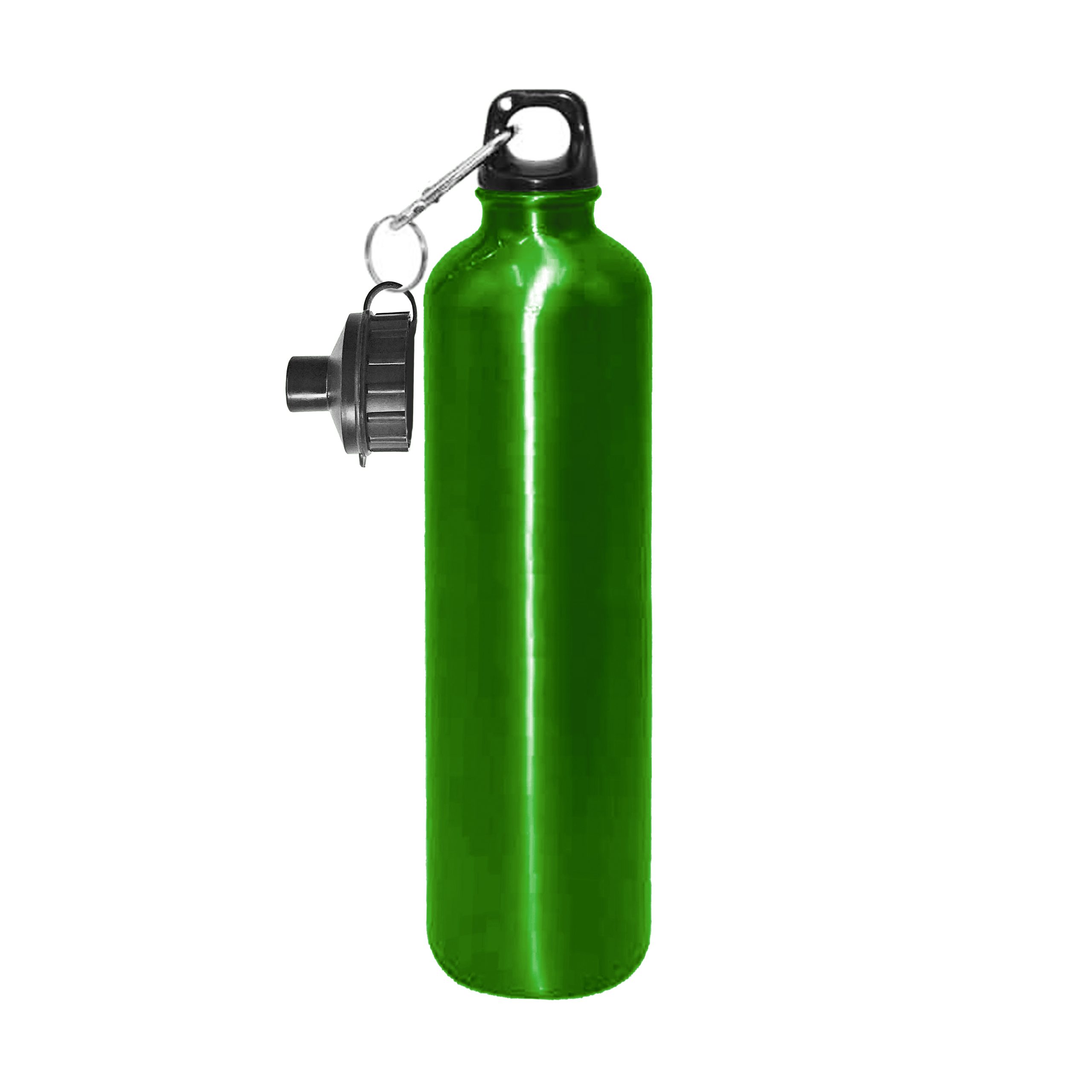 Botella deportiva de aluminio con tapa rosca y gancho mosquetón.