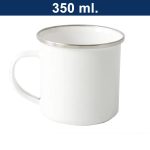 Mug enlozado lechero con borde de acero inoxidable. Presentación en caja individual blanca.