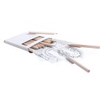 Memo set ecológico rectangular que incluye set de post-it, bloc de notas, regla y bolígrafo ecológico, tinta azul.
