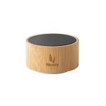 Compacto parlante con cuerpo en bambú/bamboo y conexión Bluetooth®. Con 3W de potencia, función manos libres, radio FM, una ranura para tarjetas mini SD y base antideslizante. Recargable mediante cable USB -incluido- y presentado en caja de color kraft.