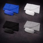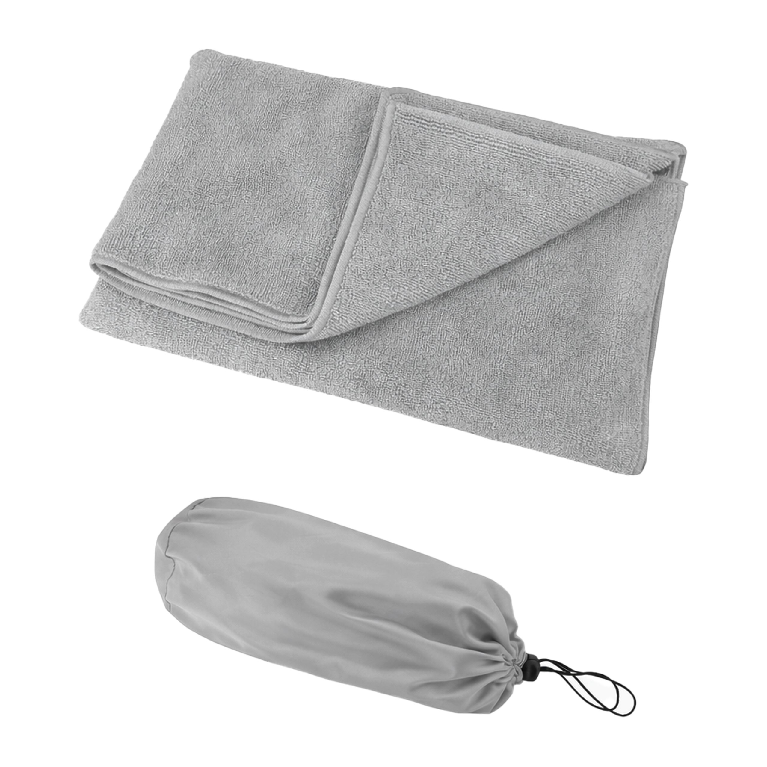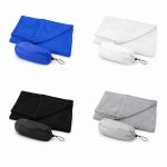 Toalla microfibra facial. Presentación en bolsa de transporte de poliéster.